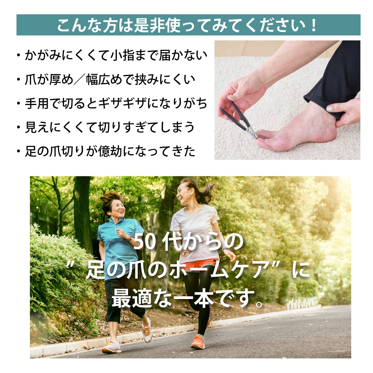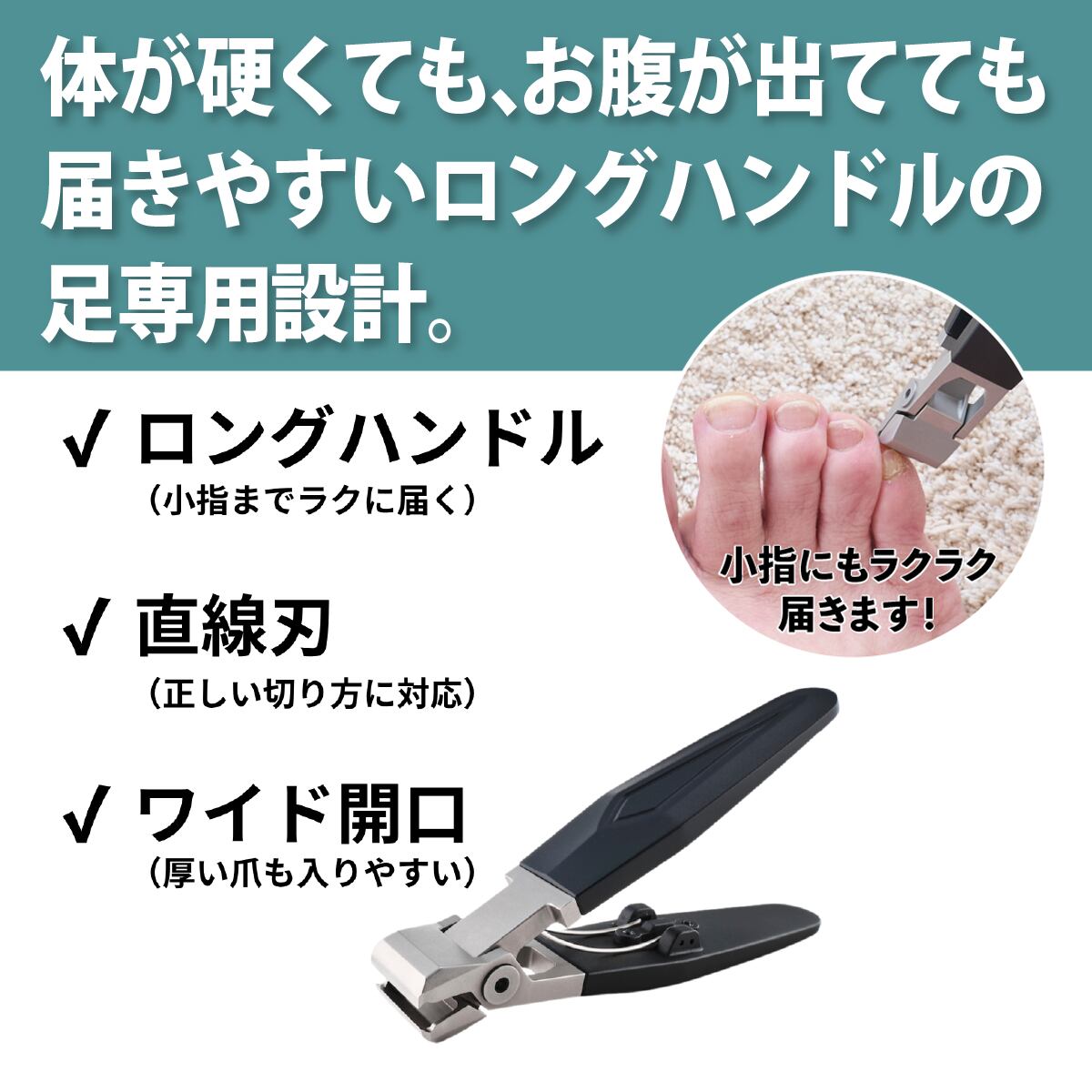 ●巻き爪の専門家が監修! 「切れない・届かない」足の爪切りの悩みから生まれた一本。